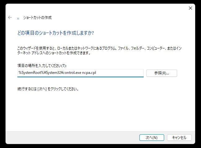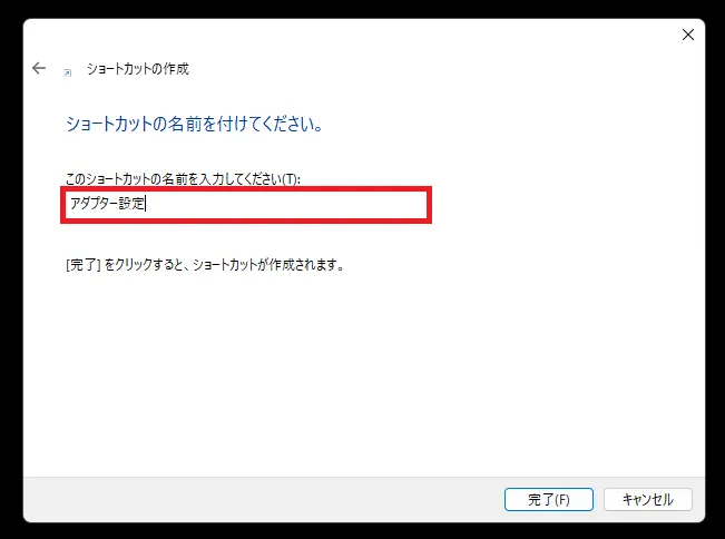これで、作成したショートカットをダブルクリックするだけで、「ネットワークアダプター設定の変更」画面に簡単にアクセスできます。