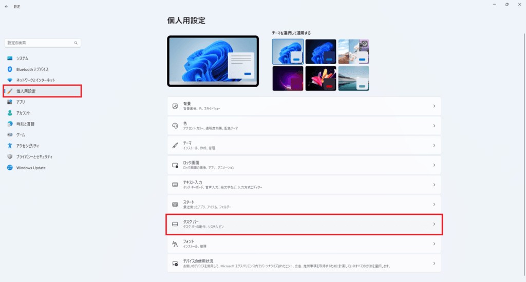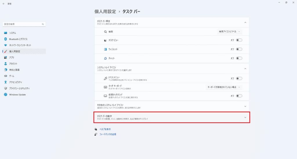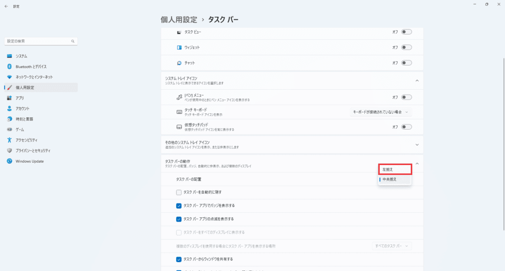 - タスク バーの配置を「左揃え」に設定し、完了です。